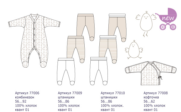 Арт.77009-пл Ползунки полоска: беж, розов, голуб; Интерлок. 56-86р-р -180руб.